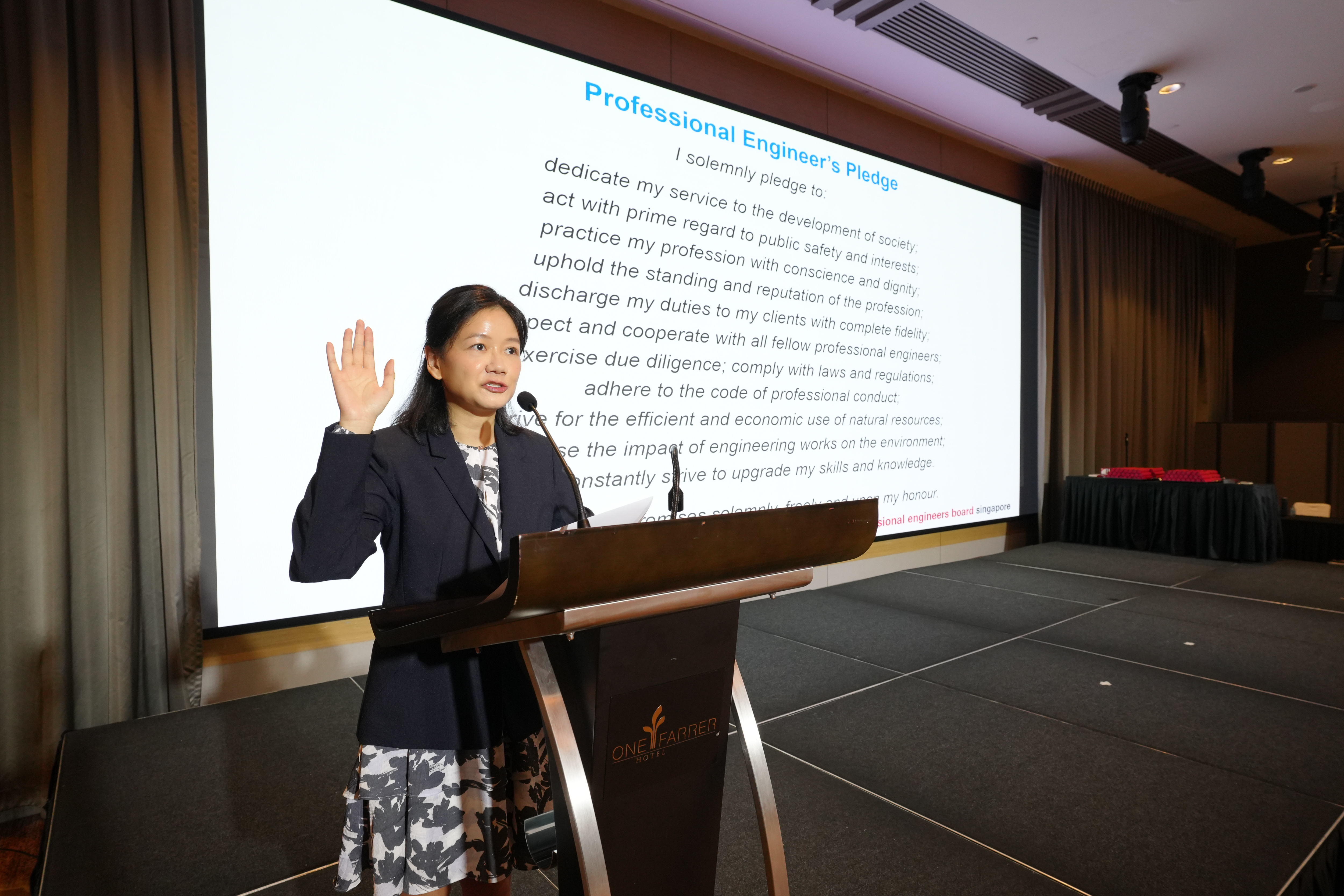 A Pledge of Dedication led by Jasmine Tan, PE (Mechanical), Professional Engineers take a solemn pledge, reaffirming their dedication to society and the engineering profession. The united pledge symbolises the profession’s commitment to innovation, sustainability, and societal advancement.
