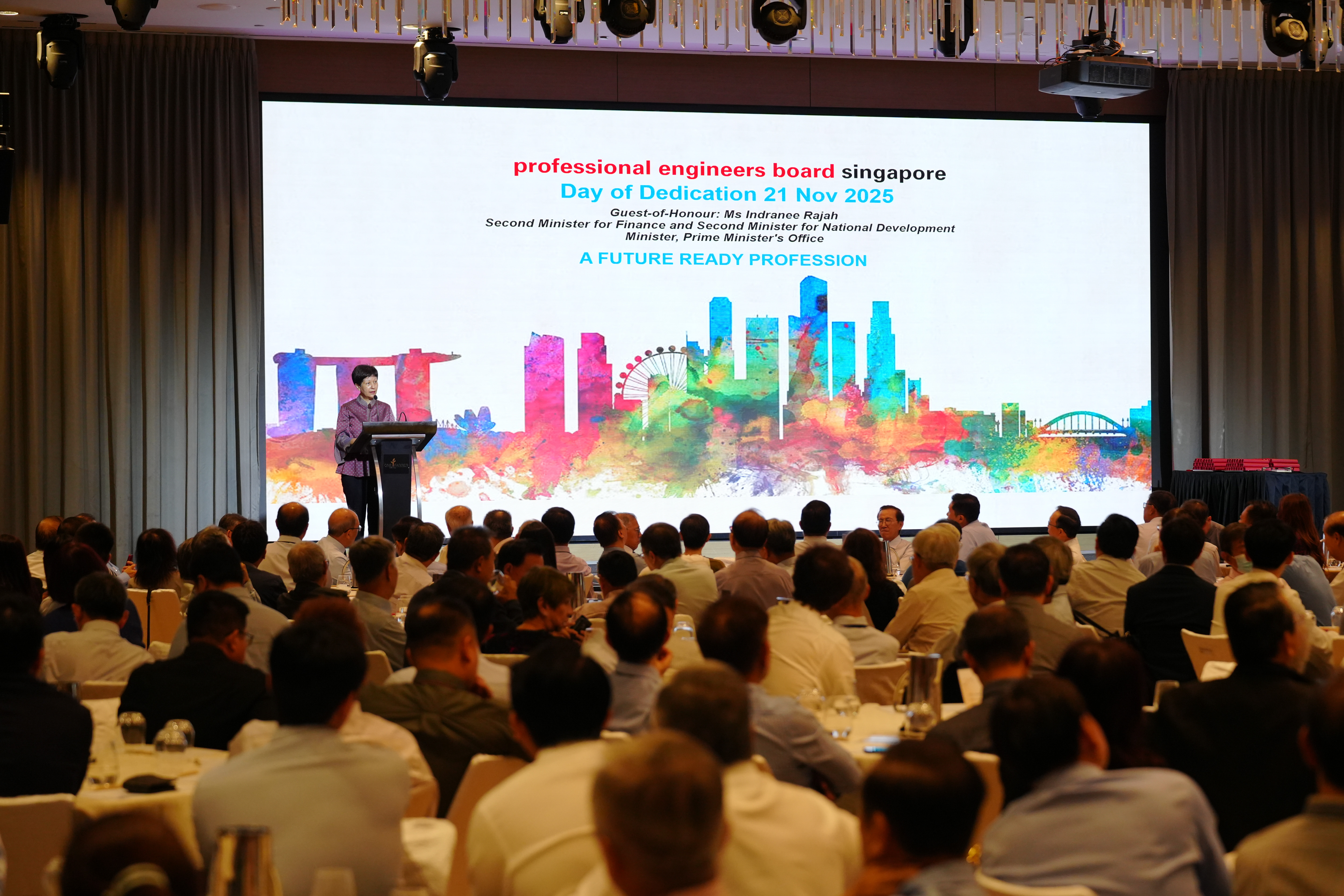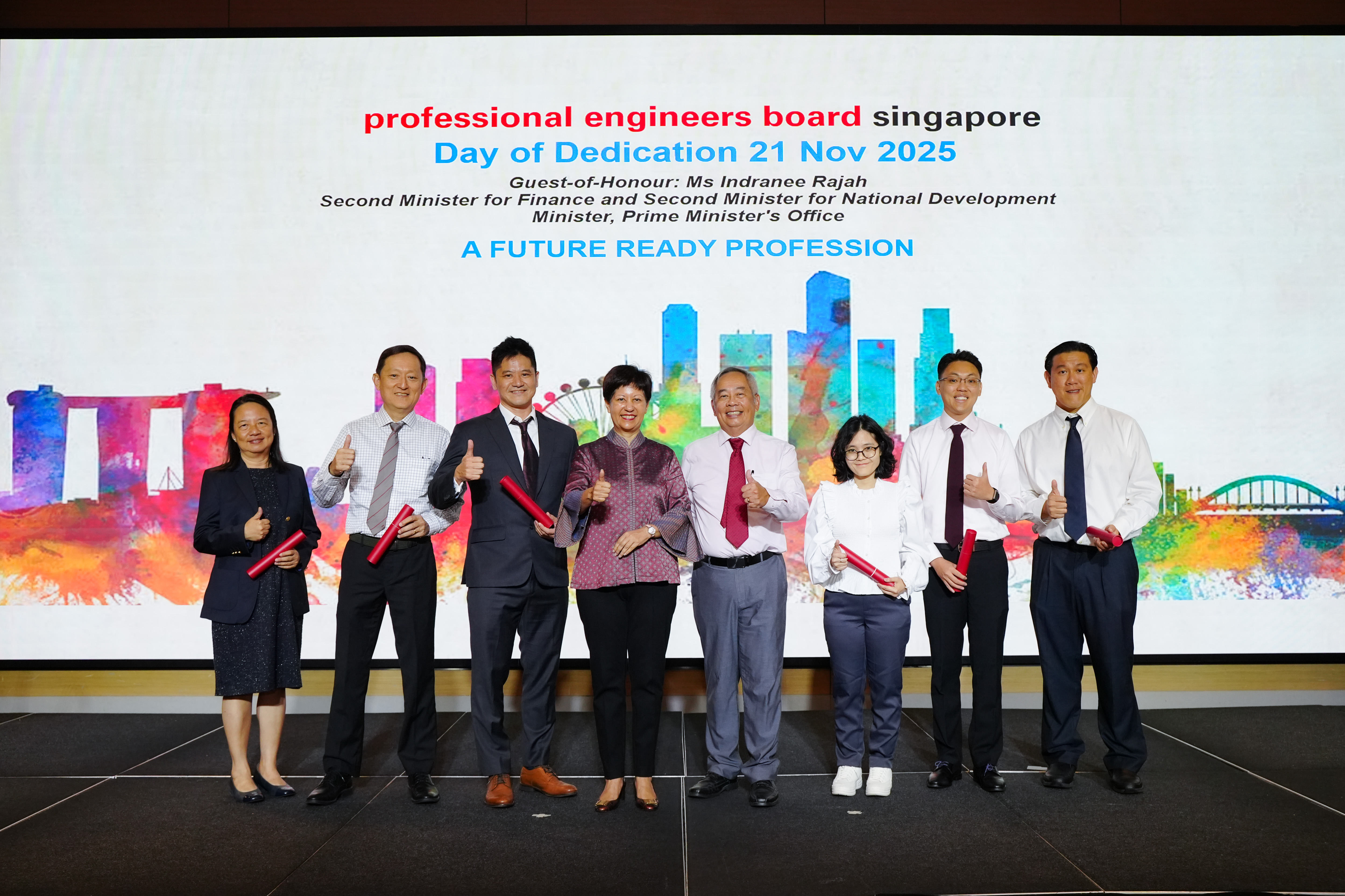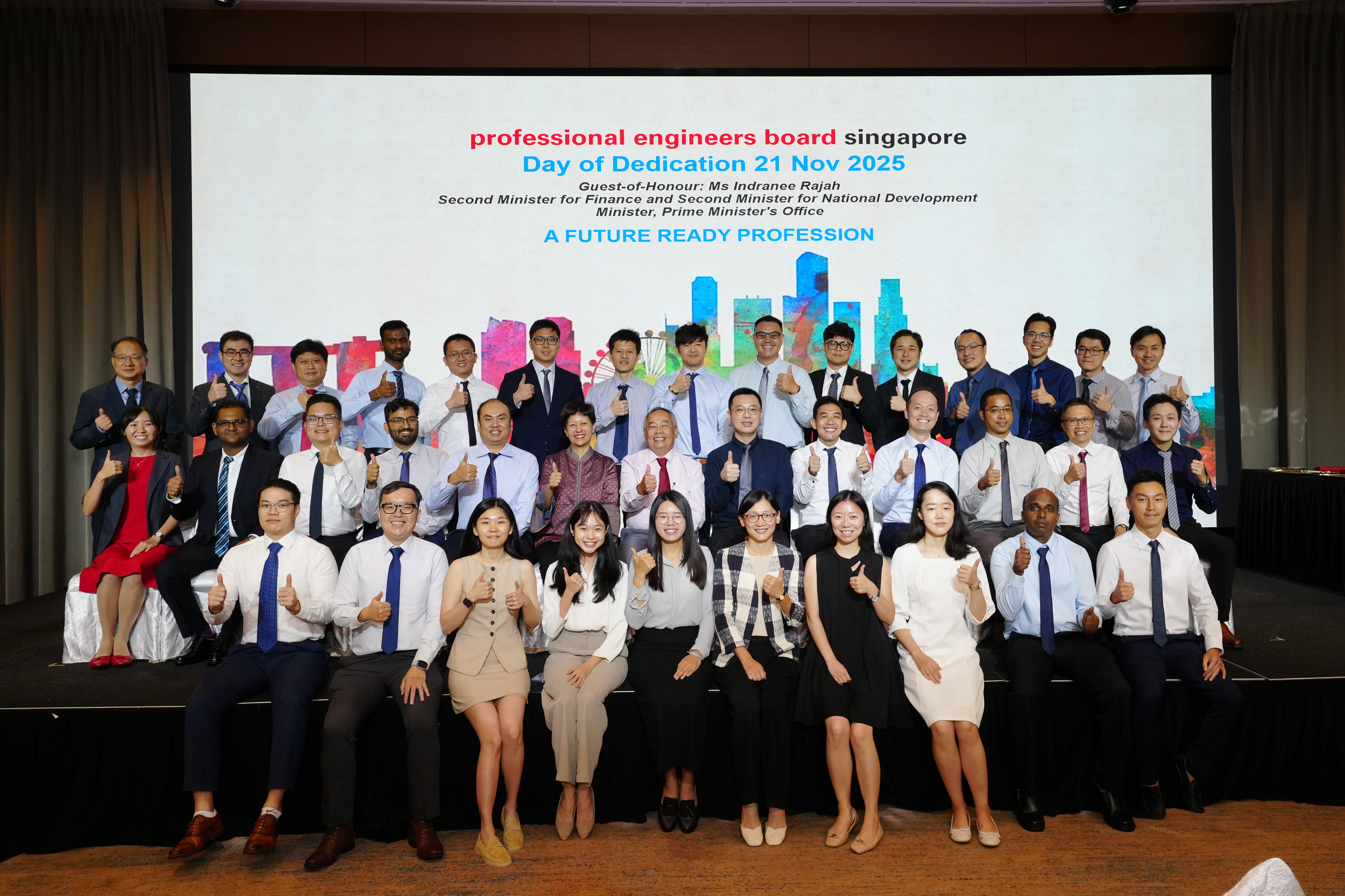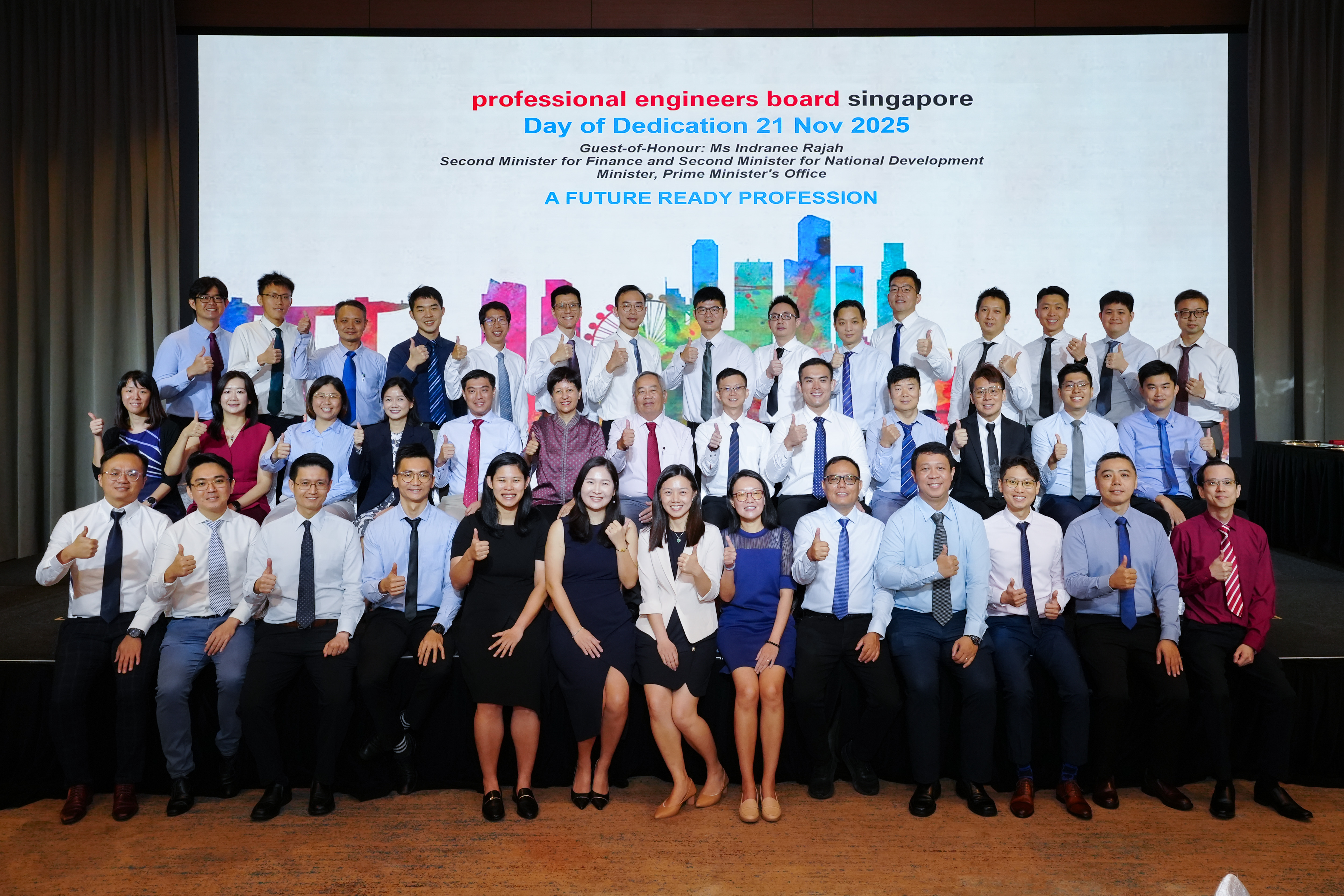 The Professional Engineers Board (PEB)'s Day of Dedication 2025, themed "A Future Ready Profession," took place on 21 November at One Farrer Hotel. Over 340 attendees, including 88 newly minted Professional Engineers (PEs), 11 Specialist PEs, and 6 ASEAN Chartered PEs, gathered to celebrate the achievements and commitments of the engineering community in advancing Singapore's built environment. The atmosphere reflected a strong sense of pride and commitment to the engineering profession.
