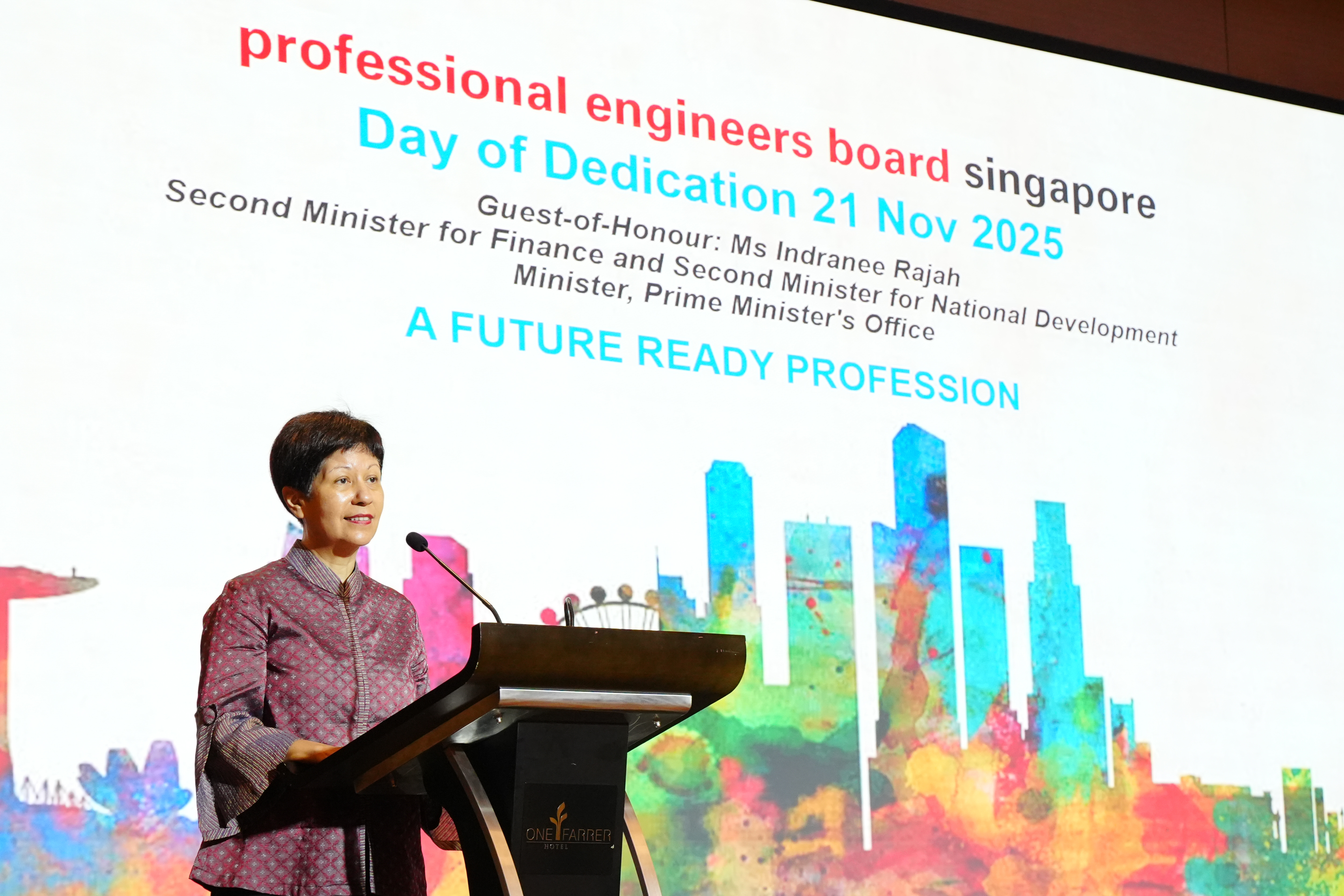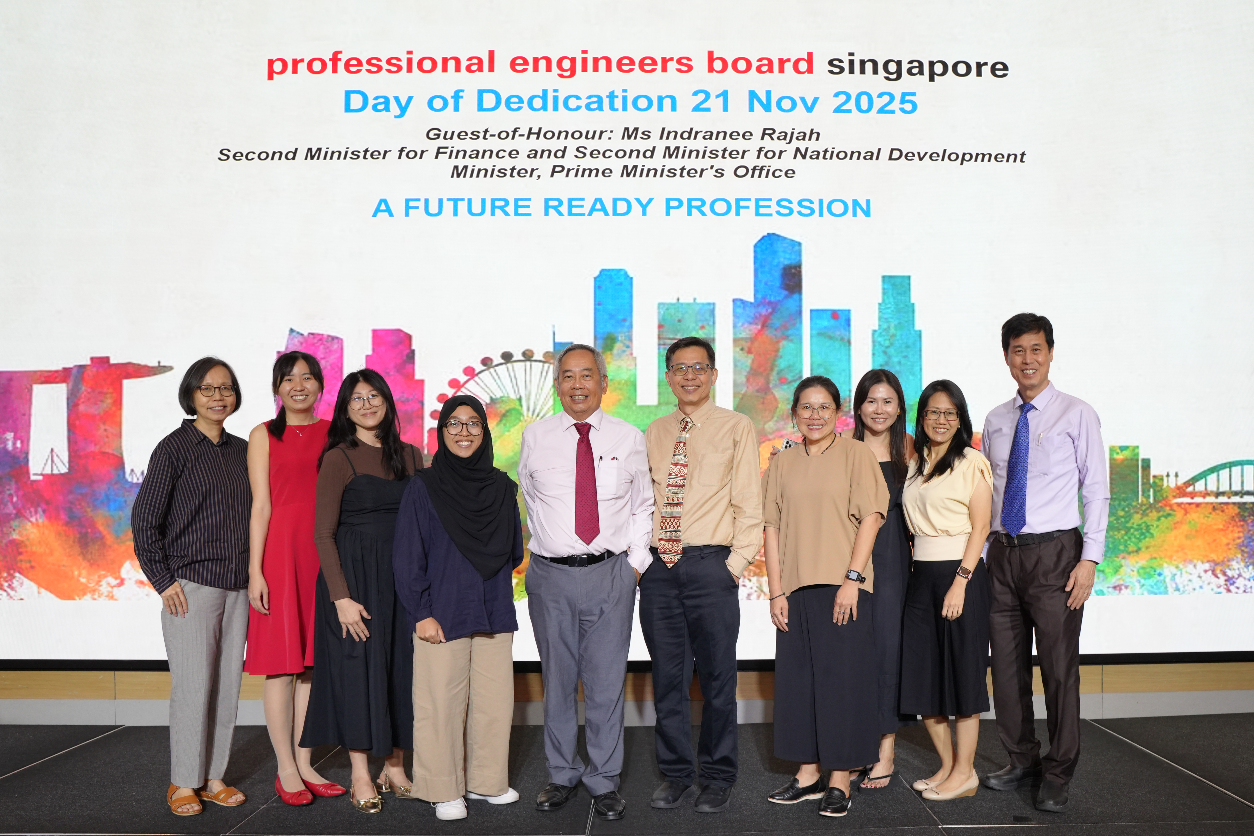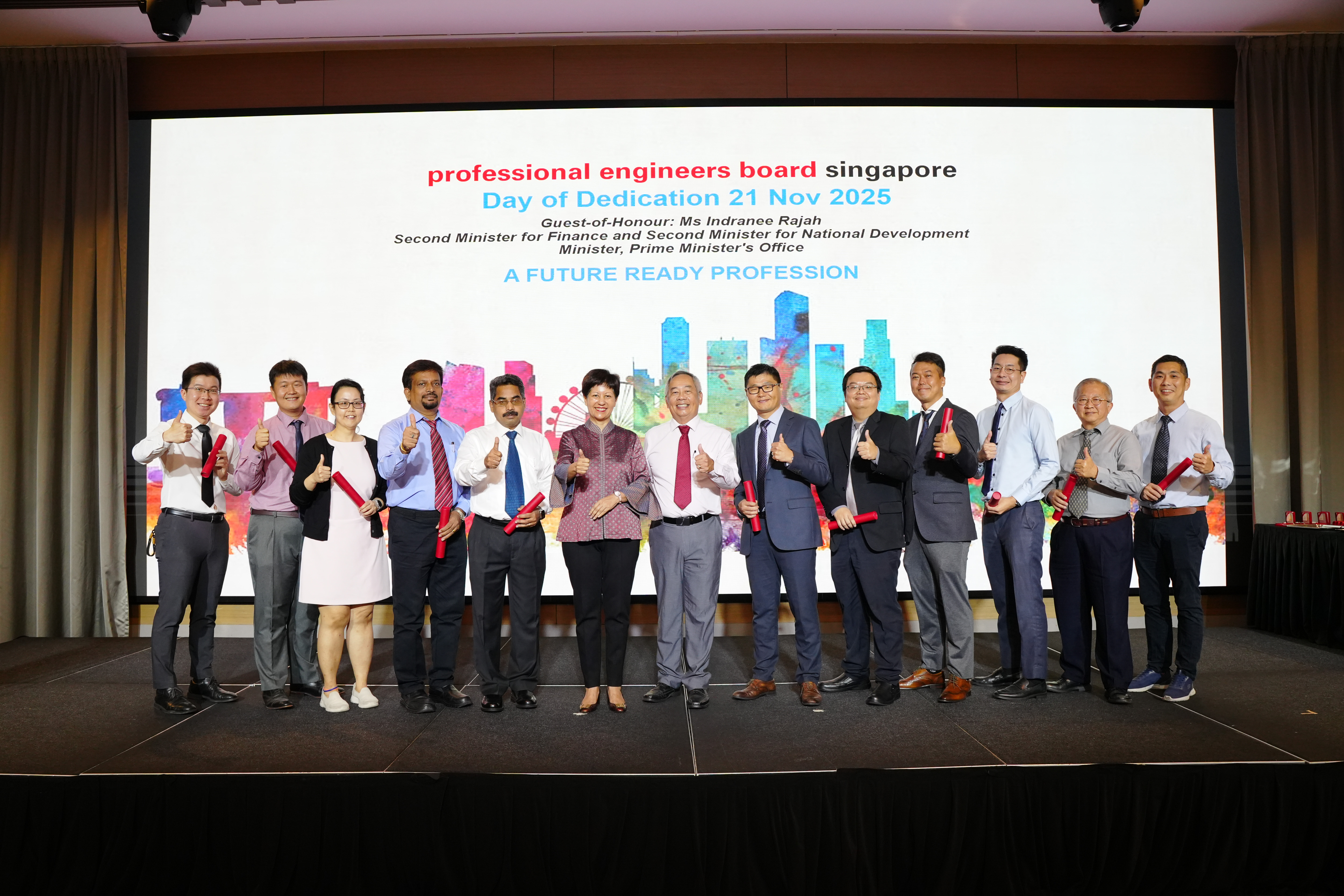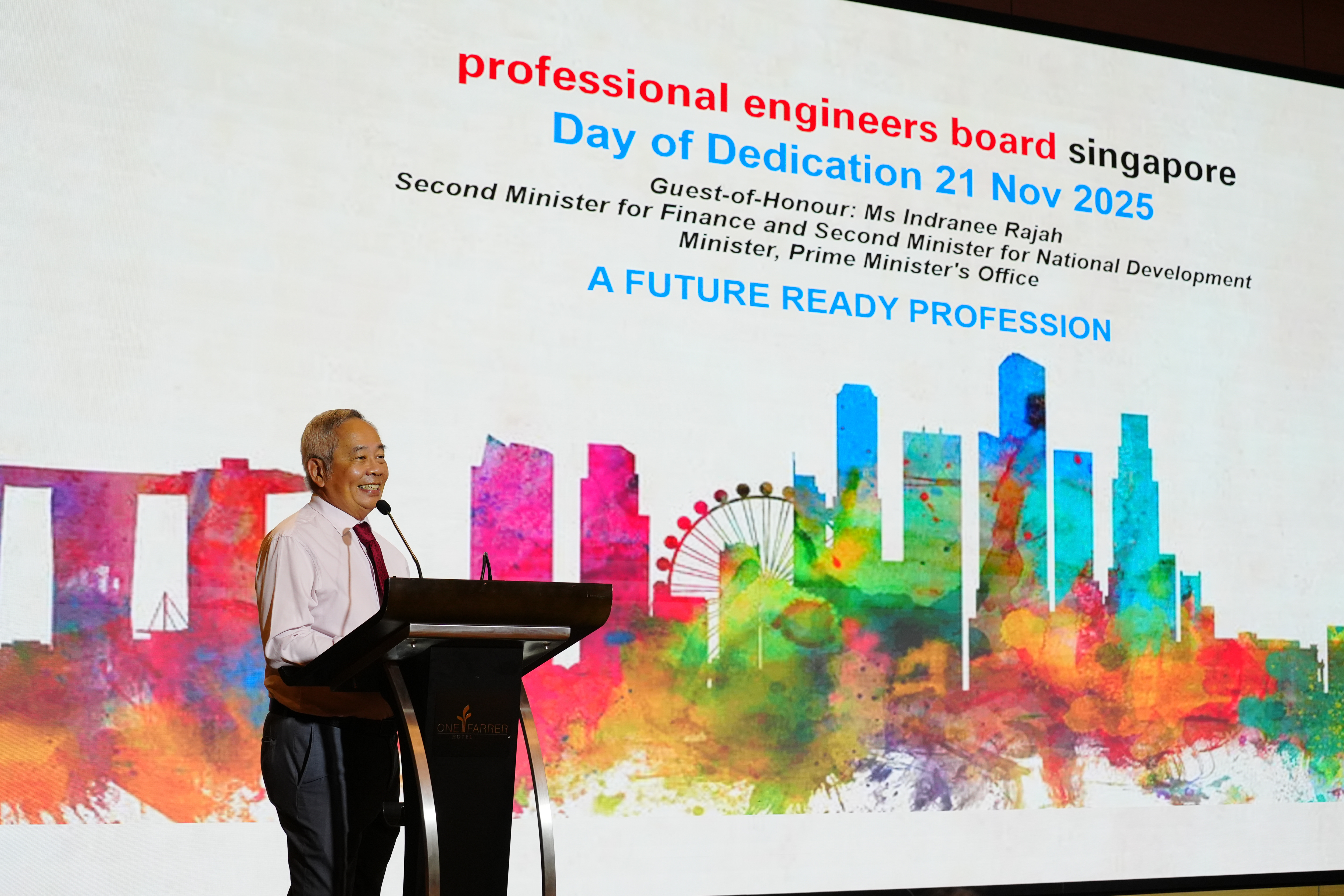 The Professional Engineers Board (PEB)'s Day of Dedication 2025, themed "A Future Ready Profession," took place on 21 November at One Farrer Hotel. Over 340 attendees, including 88 newly minted Professional Engineers (PEs), 11 Specialist PEs, and 6 ASEAN Chartered PEs, gathered to celebrate the achievements and commitments of the engineering community in advancing Singapore's built environment. The atmosphere reflected a strong sense of pride and commitment to the engineering profession.